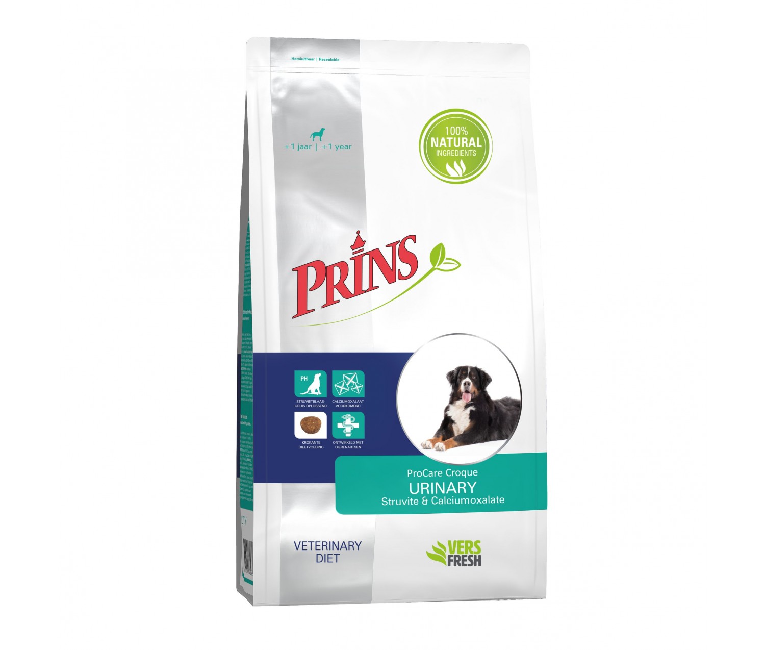 Les croquettes pour chien Prins ProCare Croque Veterinary Diet Urinary soulagent les problèmes urinaires (calculs de struvite et d'oxalate de calcium).
